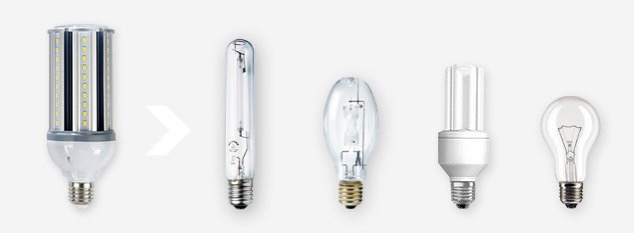 The table illustrates some of the possible retrofit applications; highlighting comparable lumen output and wattage of the LED lamps compared to traditional lamps.